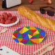 This colorful neon design features multiple polygons in a bright fun pattern.