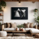 Triangles and polygons intertwine in translucent layers with surgical edges and subtle shadows. This work builds geometric depth through calculated transparencies, where each intersection reveals new spatial relationships and light play.