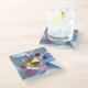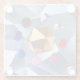 This coaster features an abstract art image centred around a metallic gold polyhedron. The polyhedron is multifaceted, reflecting light in a shimmering gradients and floats slightly above a background of subtly shifting light metallic blue polygons. Around the central polyhedron are geometric shapes in metallic red, silver, lavender, burgundy, pink, blue and purple, creating a harmonious arrangement. The coaster is a square glass coaster. The glass coaster is dishwasher safe.