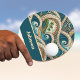 These ping pong paddles will remind you of the beach, surf, and sand, whether you're playing in a coastal cabin among summer breezes or in a basement in snow country. Swirls of Polynesian waves reveal tropical blue and geen jewel tones of the South Pacific and palm trees in a vintage style, remniscent of beach-inspired ethnic art or tattoos. Your name appears in sandy tan on a ocean color teal background, so make sure to type your name in the Personalize section.