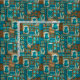 Teal, turq, aqua, cocoa and natural colorway. It is "good fortune" to have the Tiki God Ku protect you. We have surrounded him with pineapples, tribal staffs, graphic flowers and tapa elements in this whimsical design that is reminiscent of the Aloha shirt designs of the forties and fifties. There are several home decor products that coordinate. This design comes in several colorways.