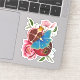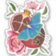 Laser cut sticker features a pomegranate and blue lunar moth with greenery and flowers.