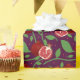 Fresh Red Pomegranates on plum purple, surrounded by swirly green botanicals and leaves. Pomegranate seeds scattered about add detail. Perfect for Harvest, Christmas, Autumn, Holidays, Hanukkah, Hostess gift wrap and more!