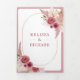 Pomegranate Pink Floral Pampas QR Code Wedding Tri-Fold Invitation