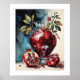 This watercolor painting captures the vibrant beauty of a pomegranate with rich hues and delicate details. It is a graceful piece that adds warmth and sophistication to any setting.