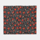 Pomegranates and Bella Moths in red and grey Fleece Blanket