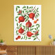 Pomegranate branches with lush leaves and rich red fruits stretch across a black background. A secondary layer subtly fades away, adding depth. Traditionally painted on paper with markers, the elements are scanned and composed into a pattern in Photoshop.