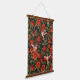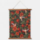 Pomegranates and hummingbirds/green leaves on blac hanging tapestry