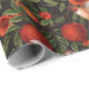 Pomegranates and hummingbirds/green leaves on blac wrapping paper
