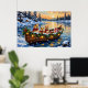 Bring spirited, fluffy charm to your holiday season with this adorable Pomeranian Christmas design! This magical scene features three cute, expressive Pomeranians sitting contentedly in a cozy wooden boat, gently floating on a serene snowy lake at sunset. The boat is beautifully adorned with glowing Christmas string lights and fragrant pine garlands, while the dogs wear festive scarves. They are surrounded by colorful wrapped presents and cheerful holly branches. Soft snowflakes gently fall, and the shimmering reflection of the lights on the water creates a truly magical winter holiday atmosphere. This design is a perfect Christmas gift for any Pomeranian owner, dog lover, or admirer of festive and beloved toy dog art, capturing the serene joy of the season.