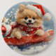 Pomeranian Dog in Sledge Let it Snow Christmas 6 Cm Round Badge
