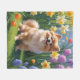 Pomeranian Dog Spring Flowers Painting Fleece Blanket