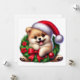 Brighten your holidays with this fluffy Pomeranian snuggled in a festive wreath. A delightful way to share Christmas joy!