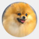 A sweet, fluffy golden colour Pomeranian is portrayed against a blue background in this original portrait.