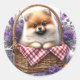 Pomeranian Puppy Dog Watercolor Wildflower Picnic Classic Round Sticker