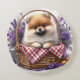 Pomeranian Puppy Dog Watercolor Wildflower Picnic Round Cushion