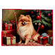 Pomeranian sitting by Christmas tree Large Gift Bag