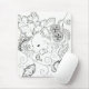 After the loss of two of my long-time pets, I began sketching animals in idyllic locations, surrounded by flora. The drawings are also based on henna or mehndi designs that inspire me. This dog mouse pad is one of my recent black-and-white drawings.