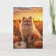 Embrace the rustic charm of Thanksgiving with our stunning card showcasing an adorable Pomeranian in a harvest field as the sun sets in the background. Share the warmth and beauty of the holiday with your loved ones through this exquisite card.