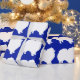 Pomeranian wrapping paper white silhouette blue background gift wrap pomeranian dog