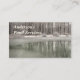This business card advertises a pond service company which does pond planning, design, construction, maintenance, cleaning and management. It features a scene of peace and serenity. It is very early spring and this beautifully constructed pond is partially thawed. Snow and icy bare trees ring the outside and are reflected in the water. All text can be customised to suit your individual situation.