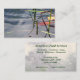 This business card advertises a pond service company which does pond planning, design, construction, maintenance, cleaning and management. It features a scene of peace and serenity...floating leaves and pond grass on dreamy reflected ripples in shades of pink, yellow, blue, green and black grace this beautifully constructed pond. All text can be customised to suit your individual situation.