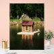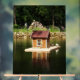 Pond with bird house on the backdrop of an alphine slide (Gorky park,Melitopol. Ukraine)