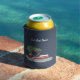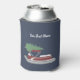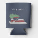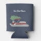 Spread holiday cheer and show off your love of your pontoon boat with this custom Christmas can sleeve. The foam can wrap features an illustration of a pontoon boat with a Christmas tree on top set against a navy blue background. It's ready to be personalised with your name or your boat's name in white script lettering.