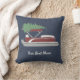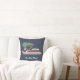 Create some custom holiday decor for your pontoon boat or home or a personalised Christmas gift for pontoon boat owners. This throw pillow features an illustration of a pontoon boat in red and white with a Christmas tree strapped to the top set against a navy blue background. It's ready to be personalised with a boat name or your recipient's name in white script lettering.