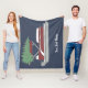 Dress up your home or pontoon boat for the holidays or create a personalised Christmas gift for pontoon boat owners. This fleece blanket features an illustration of a pontoon boat in red and white with a Christmas tree tied to the top set against a blue background. It's ready to be personalised with a boat name or other text in white script lettering.