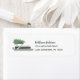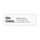 Add a nautical touch to your Christmas cards with these return address labels. They feature an illustration of a pontoon boat in green and white with a Christmas tree strapped to the top. The graphic is set against a white background with your name and address to the side in green lettering.