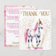 Pony birthday party cute white pony horse with pink long fringe gold sprinkles around pony horses birthday party thank you card, gold white pink themed horses pony birthday party thank you cards.