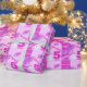 Cute pony horse purple pink striped wrapping birthday gift paper. Customise with your childs name and age. Currently reads Charlotte 5 today. Uniquely painted watercolor art and graphics by Sarah Trett.