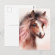 This cute pony postcard features a watercolor painting of a young horse, capturing the elegance and beauty of this majestic animal. The horse's expressive eyes and delicate facial features are highlighted by a warm, natural brown coat with a streak of white, all contrasting with an unusual pink-tinted mane. Perfect for equestrian enthusiasts and animal lovers.