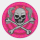 Ponytail skull w/ pink bows classic round sticker