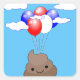 Poo Emoji Flying With Balloons In Blue Sky Square Sticker