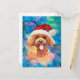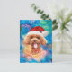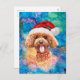 Poodle Breed Dog Christmas features a watercolor of a Poodle with a red Santa's Hat, a red Christmas collar, and a galaxy watercolor.