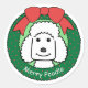 Merry Christmas! This Poodle art features a cute Poodle inside a Christmas wreath! Our dog christmas cartoons make great holiday gifts for dog lovers. Wear a Poodle t-shirt to your Christmas party, give Poodle magnets as holiday gifts, or send holiday greetings with Poodle Christmas cards! Poodle owners will love this unique dog art during the holiday season.