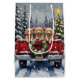 Add elegant, curly charm to your holiday season with this stunning Poodle Christmas design! This festive scene features three sophisticated and intelligent Poodles sitting gracefully in the back of a classic red pickup truck, nestled in a picturesque snowy winter forest. The vintage truck is adorned with a vibrant Christmas wreath, twinkling with red and gold ornaments and warm, glowing lights. Soft snowflakes gently fall, enhancing the winter wonderland effect. A decorated Christmas tree in the background completes this heartwarming picture, making it an ideal Christmas gift for any Poodle owner, dog lover, or admirer of festive and stylish dog art. This design perfectly captures the joyful spirit of the holidays.