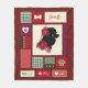 Fleece blanket with Poodle silhouette art design. Quilted look design. Red floral, chequered pattern, red colours. "Eat play love"