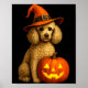 Poodle Halloween Pumpkin Witch Hat Dog Art Family Poster
