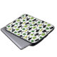 The sleeve is made of nice feeling material and seems very durable. I'm not sure how easy it'll be to clean, but the construction seems sound and the fabric is quick thick. I also like the double zipper. The printing is lovely and appears durable. The white on black contrast is nice, and the design very elegant.