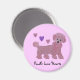 Graphic illustration of a pink poodle and hearts design. Customise this magnet with your message for a special gift. Artwork by Magins Creations.