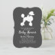 Throw a poodle party! Include the big brother or sister fur baby in the celebration with this adorable poodle dog baby shower design! Perfect for a puppy lover with a baby on the way. The french poodle is next to an adorable vintage carriage. The chalkboard grey background makes it perfect for a gender neutral or co-ed shower!