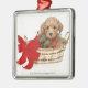 Poodle puppy sitting in Christmas basket Metal Tree Decoration