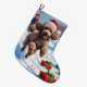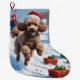 Poodle Running in Snow with Christmas Hat Large Christmas Stocking