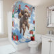 Poodle Running in Snow with Christmas Hat Shower Curtain