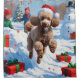 A graceful Poodle runs joyfully through the snow, wearing a bright red Christmas hat that highlights the festive spirit of the season. With its elegant posture and lively charm, this winter scene beautifully reflects the personality of this intelligent and beloved breed, while capturing the magic of the holidays.