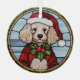 Elevate your holiday decor with this exquisite stained glass Christmas ornament. Crafted with meticulous attention to detail, this ornamental masterpiece captures the essence of canine charm. Its vibrant colours and intricate design evoke a sense of warmth and joy, adding a touch of elegance to your tree. Handcrafted with love, this timeless piece is a perfect gift for dog lovers and enthusiasts alike. A must-have for Christmas enthusiasts, stained glass ornaments, pet-themed decorations.