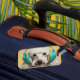 Poodle wearing headphones luggage tag